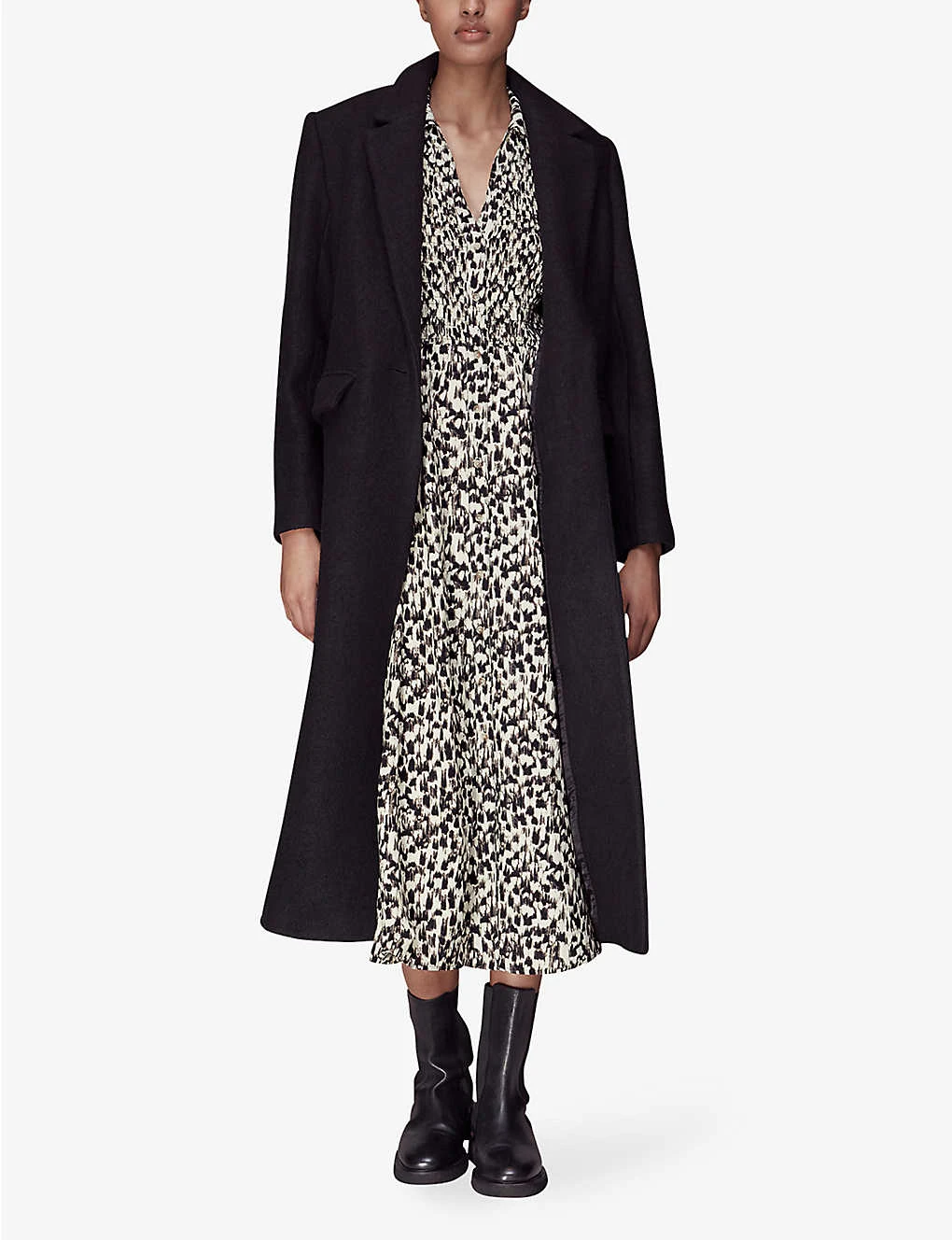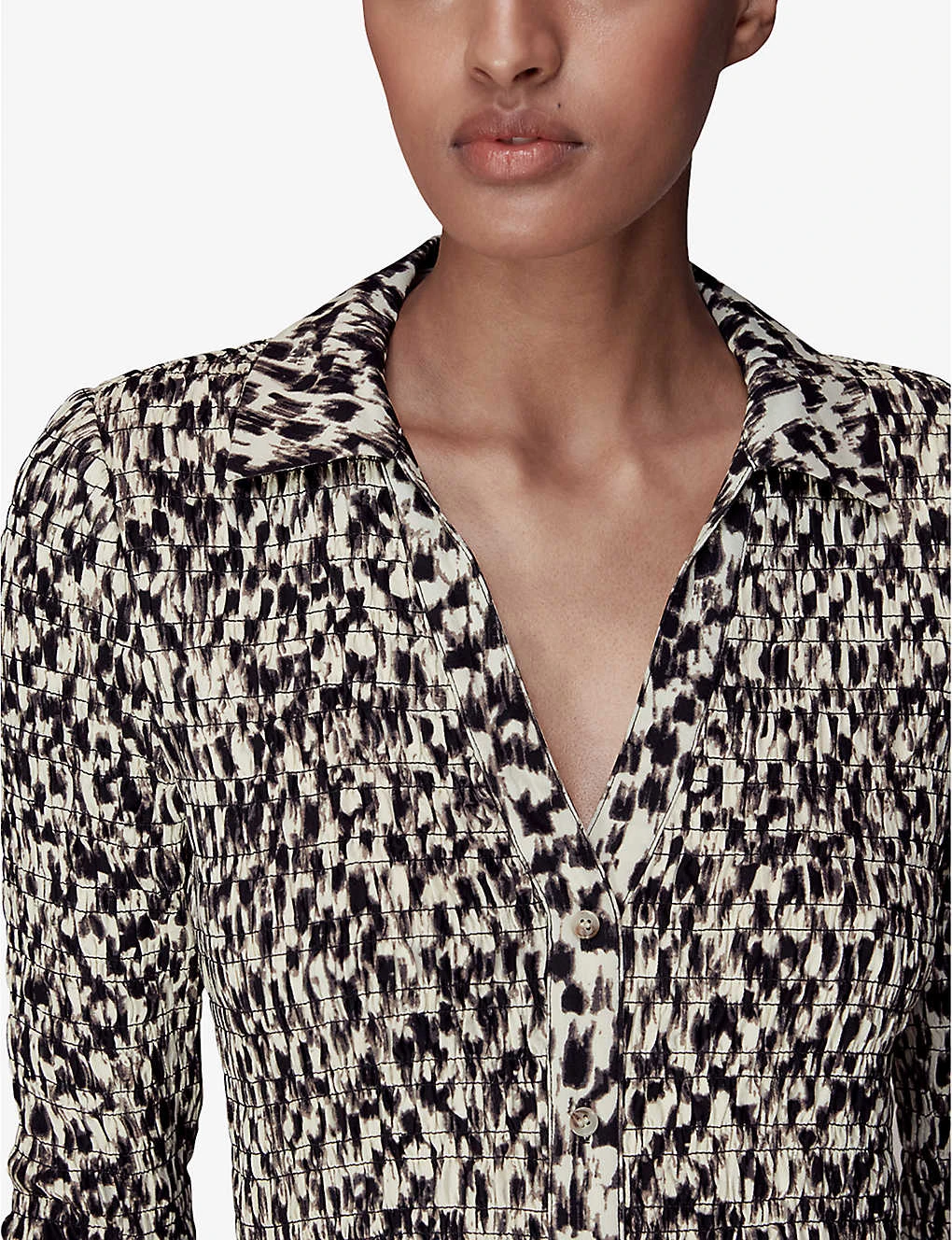 Whistles Abstract-print Shirred-bodice Woven Midi Dress