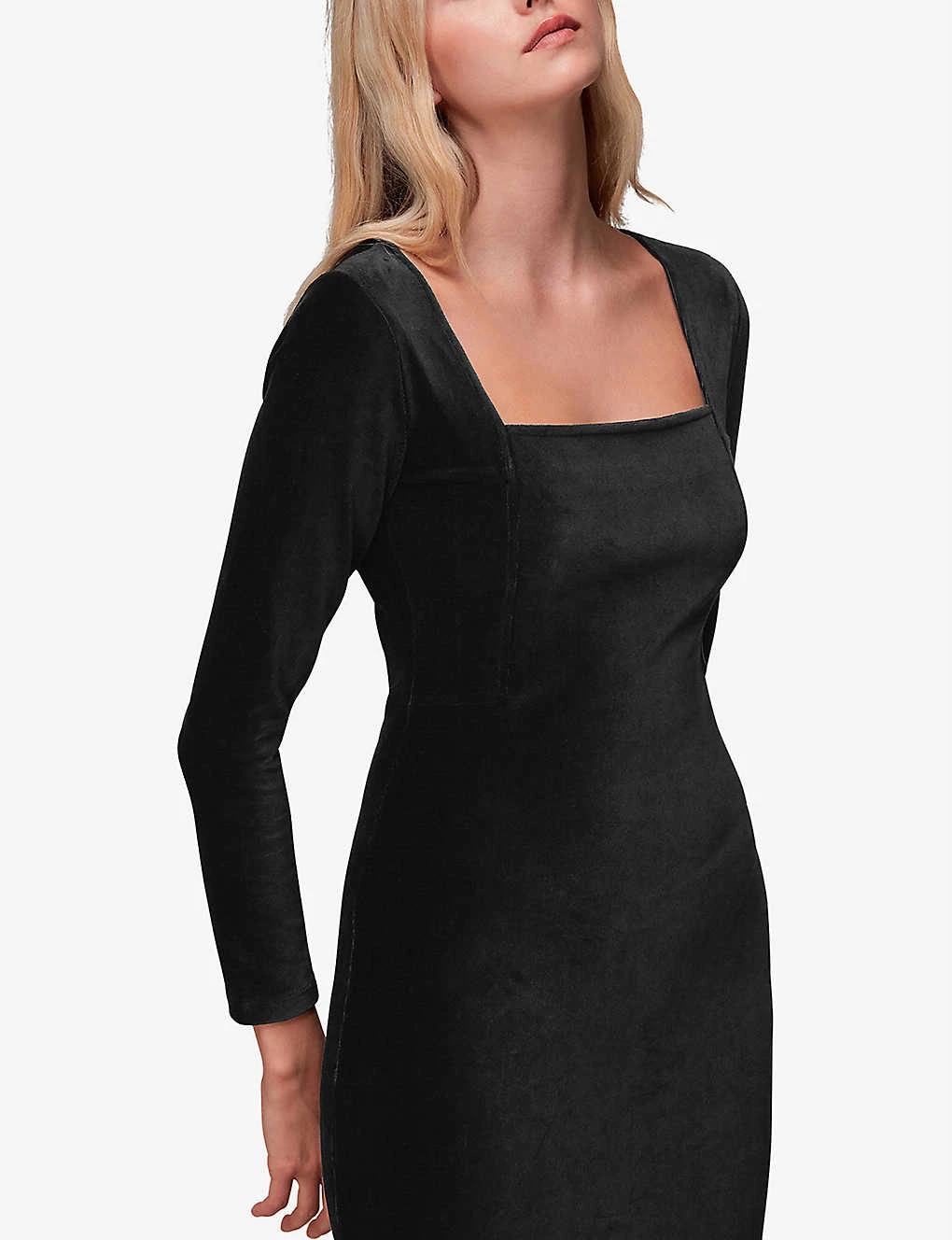 - Slim fit, square neckline, long sleeves, all-over velvet texture