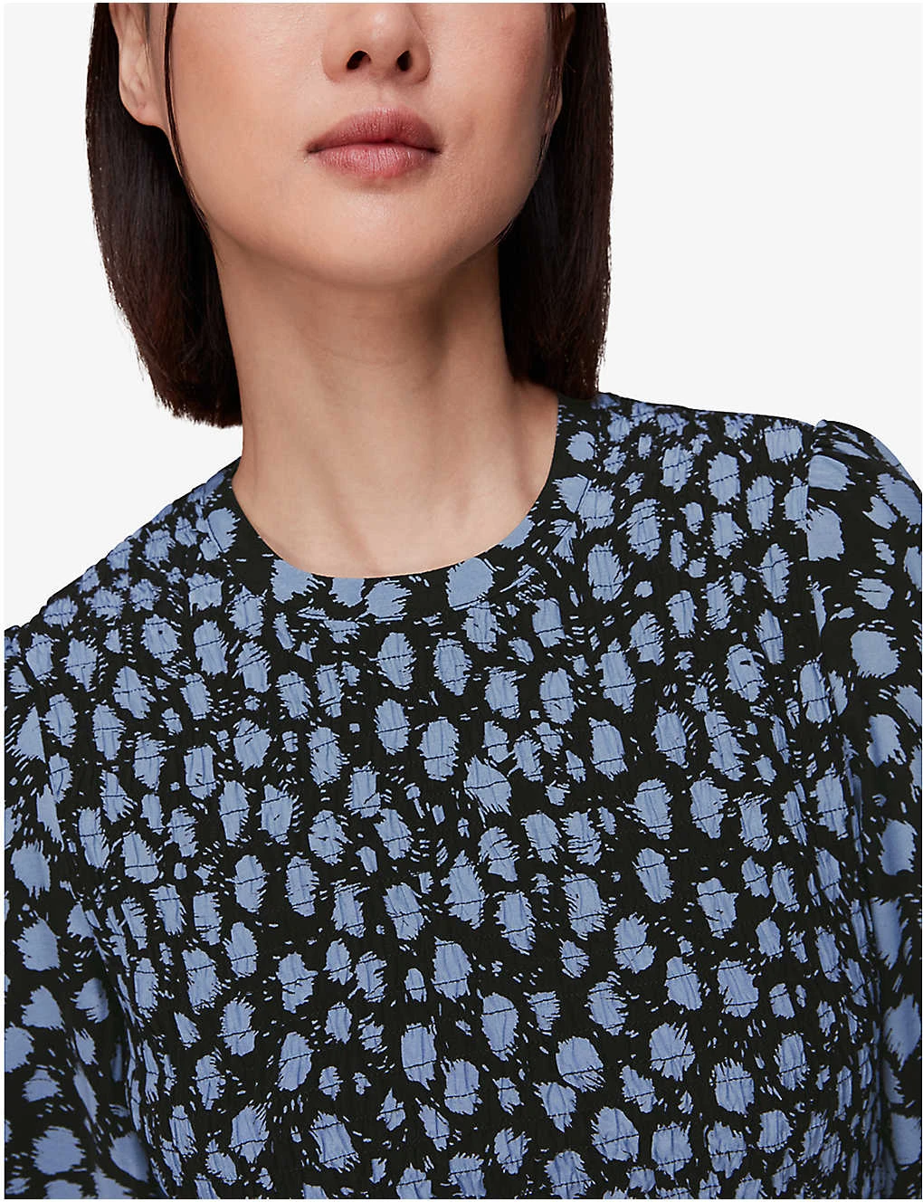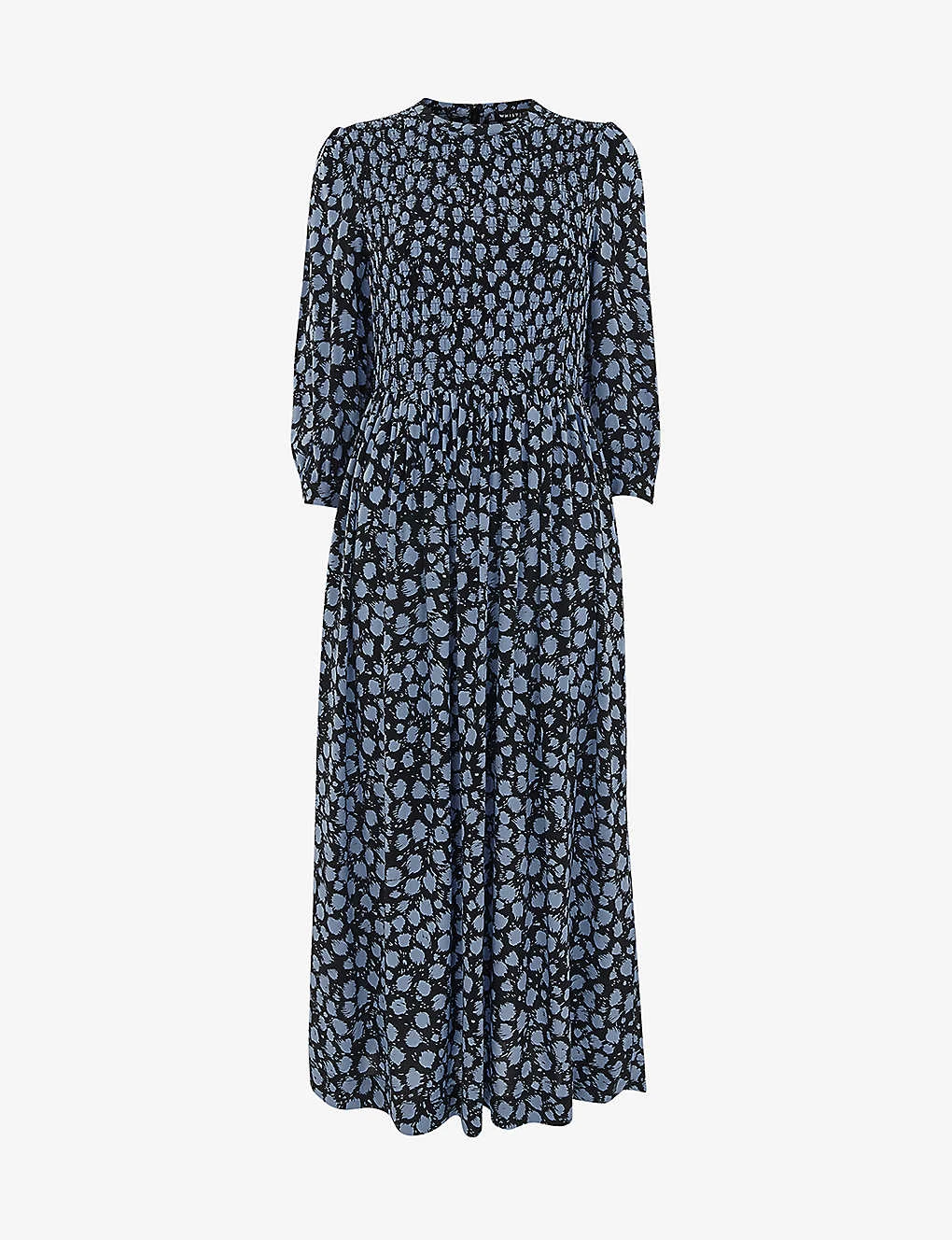 Whistles Dalmatian-print Shirred-bodice Woven Midi Dress