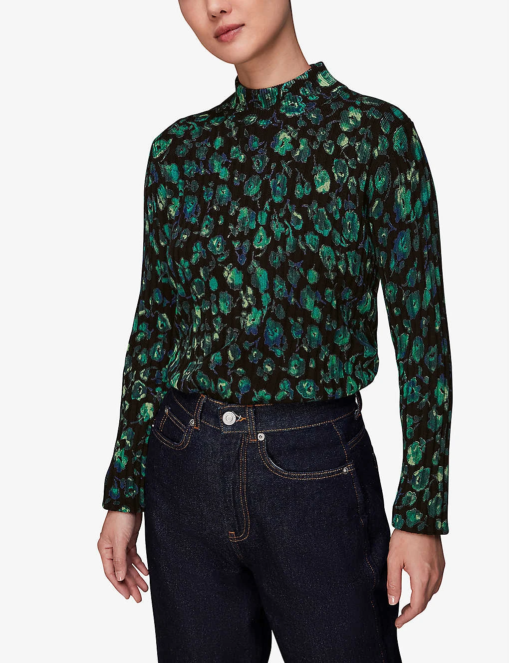 Whistles Floral-print Funnel-neck Cotton-blend Jumper