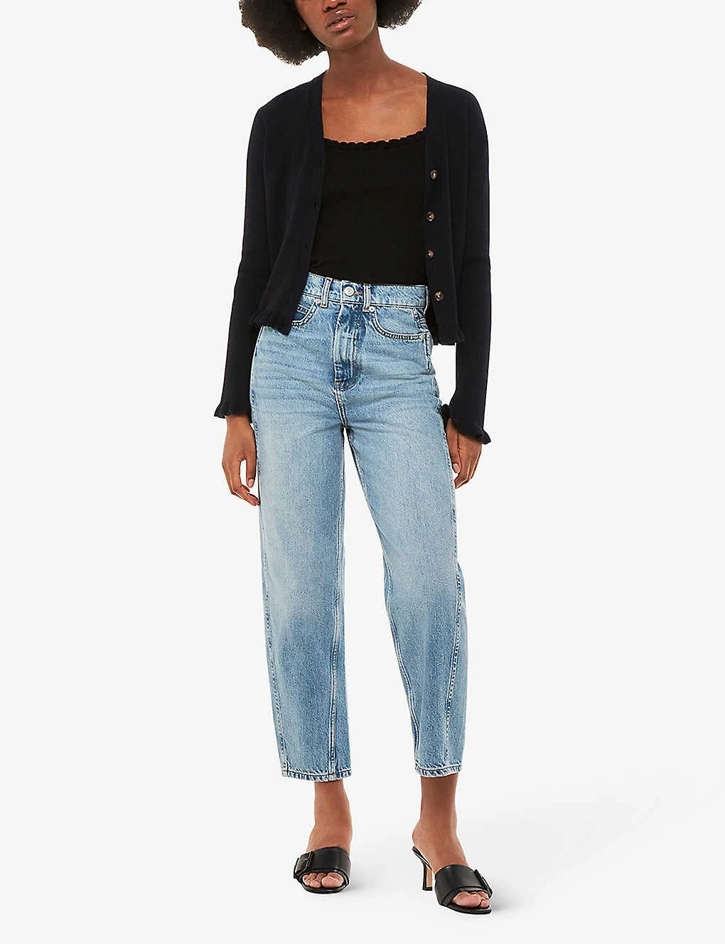 Whistles Frill-hem Cotton And Recycled Polyester-blend Cardigan