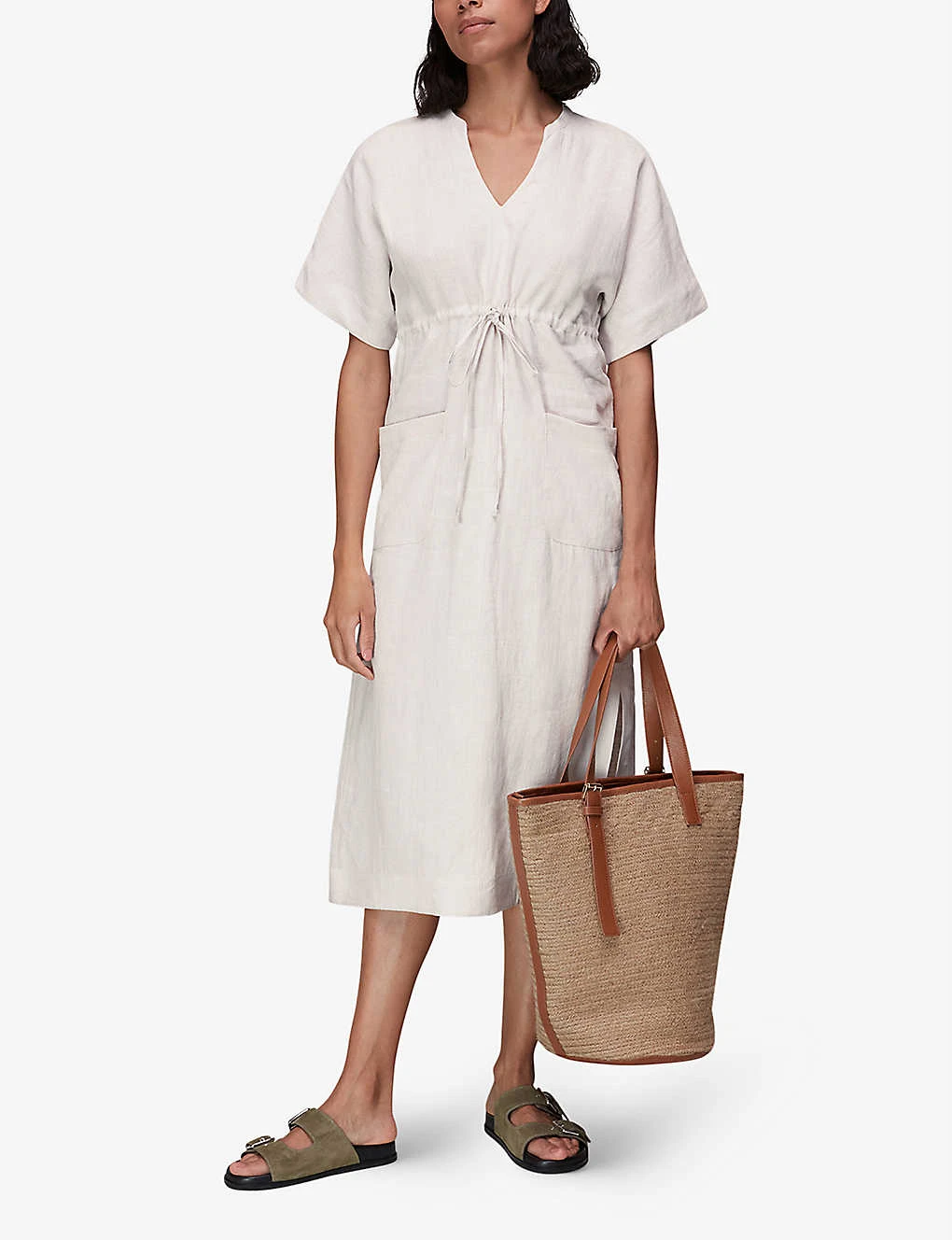Whistles Imogen Drawstring-waist Linen Midi Dress
