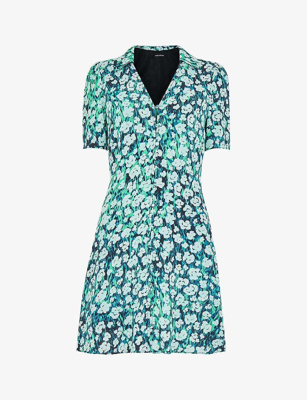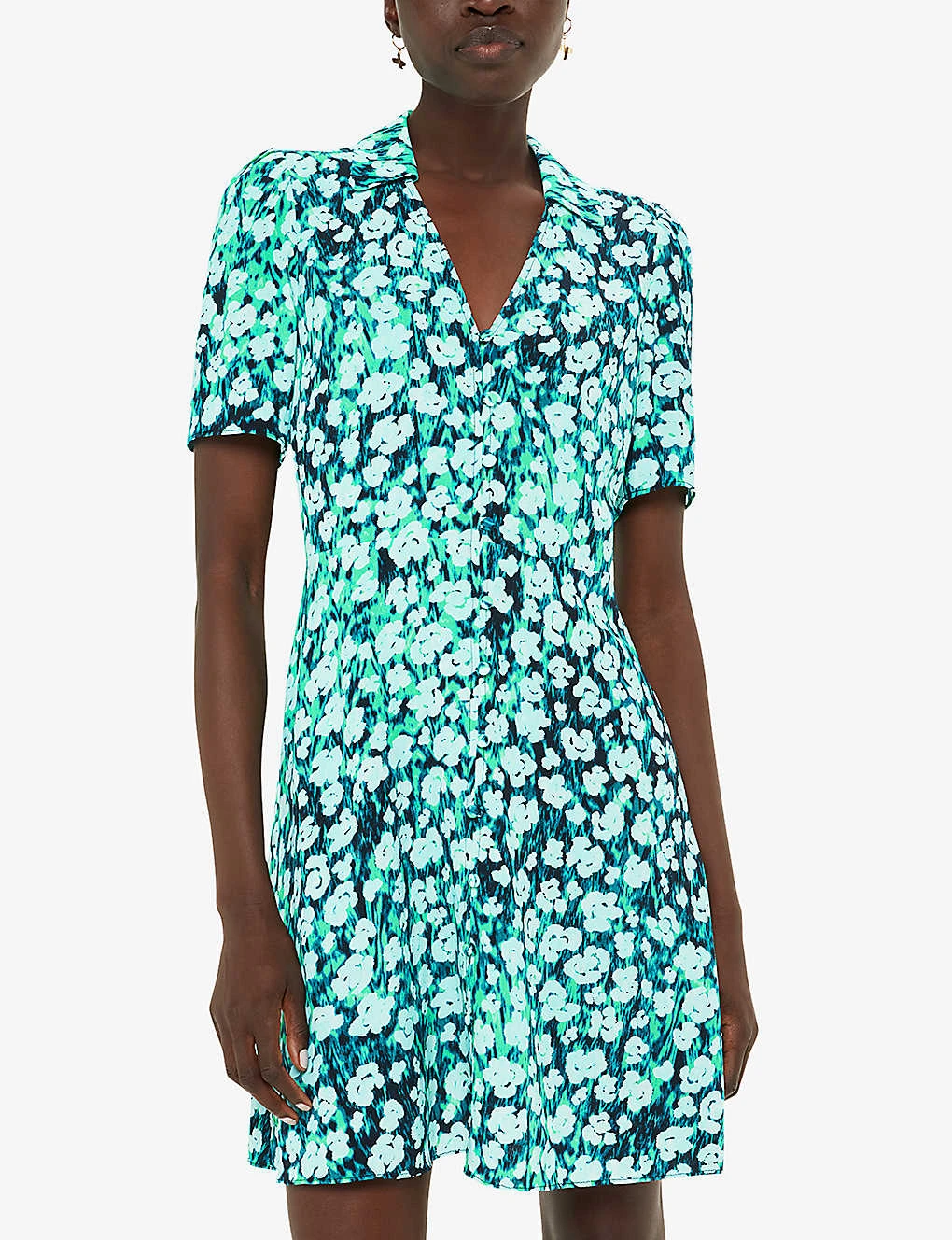 Whistles Rowal Floral-print Short-sleeve Woven Mini Dress