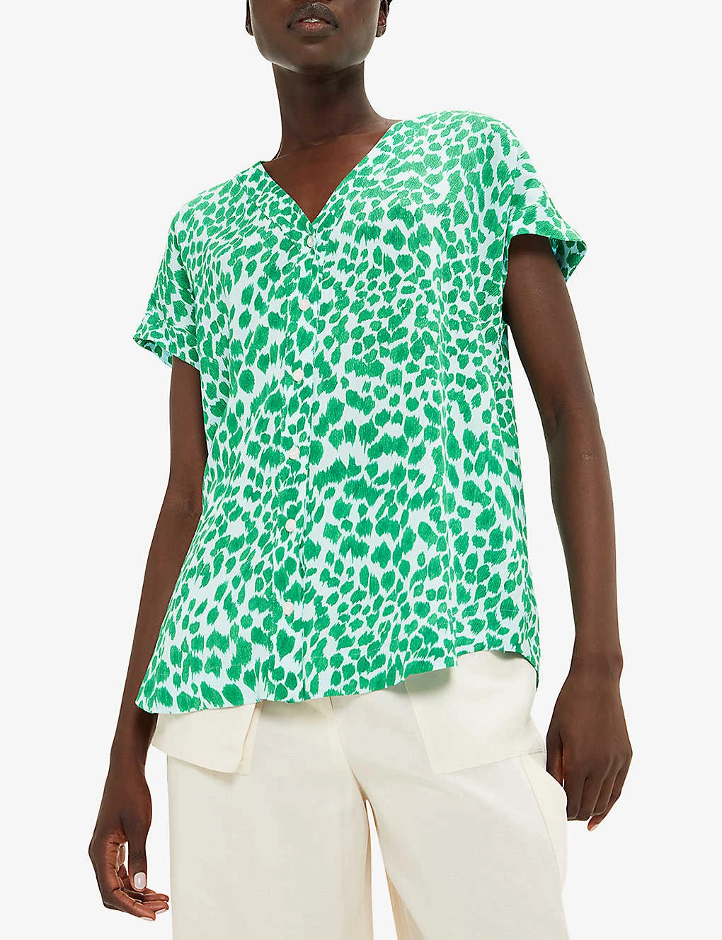 Whistles Smooth Leopard-print Short-sleeve Woven Blouse