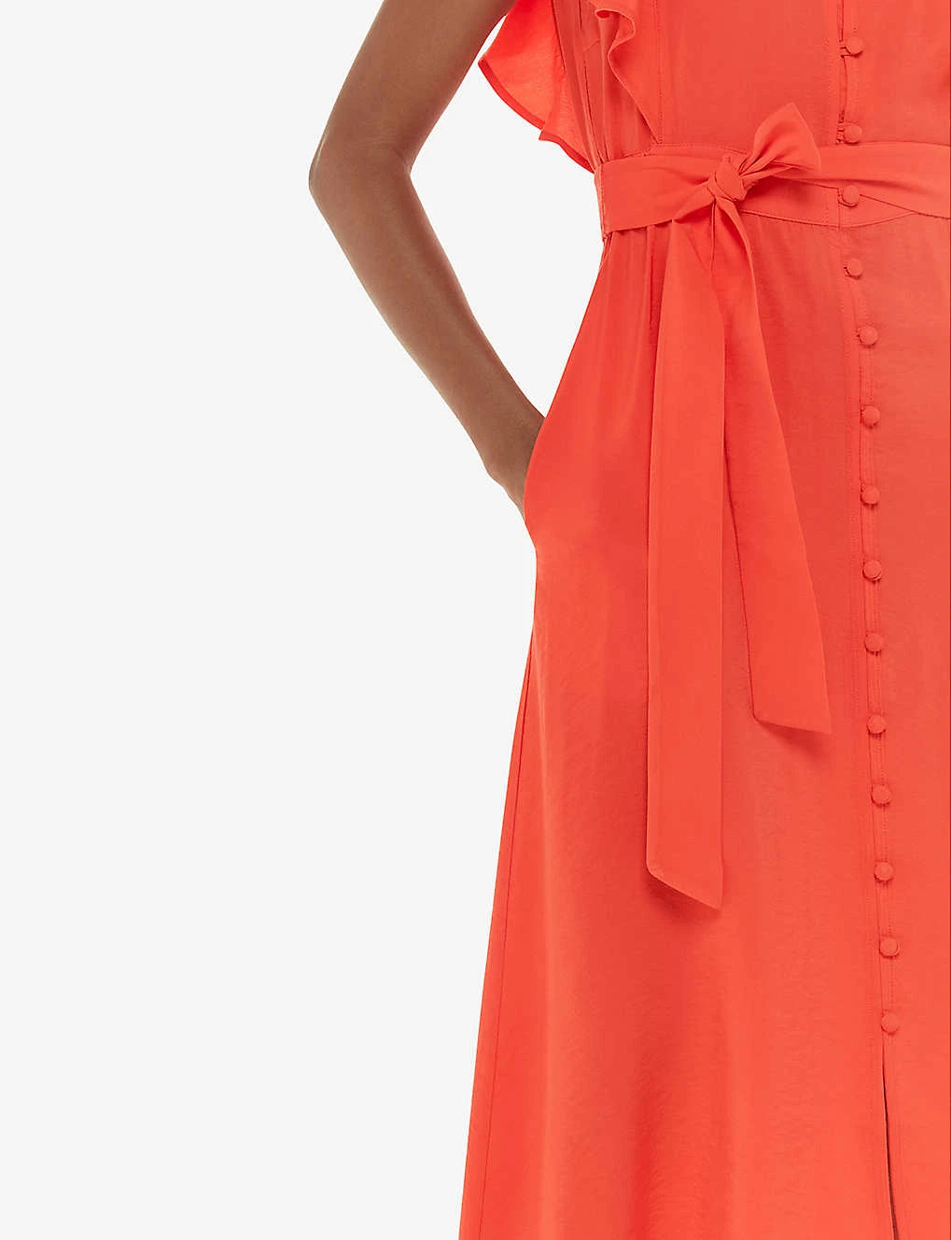 Whistles Sophie Frill-sleeve Button-down Woven Midi Dress