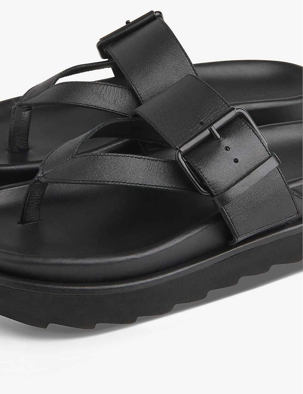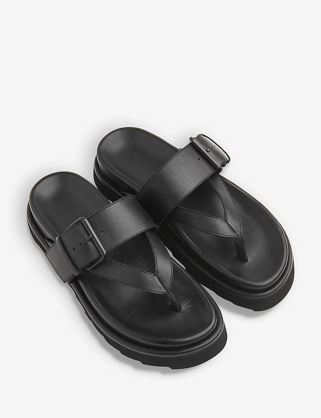 - Round toe, moulded footbed, toe-post design, buckle detail, chunky finish