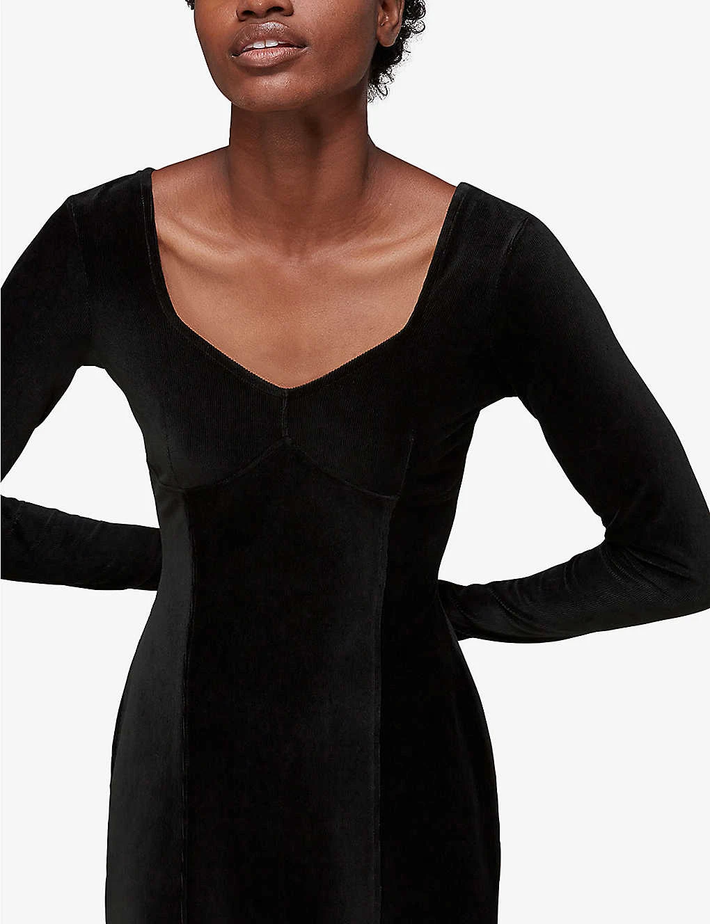 Whistles Sweetheart Long-sleeved Velvet-cord Midi Dress