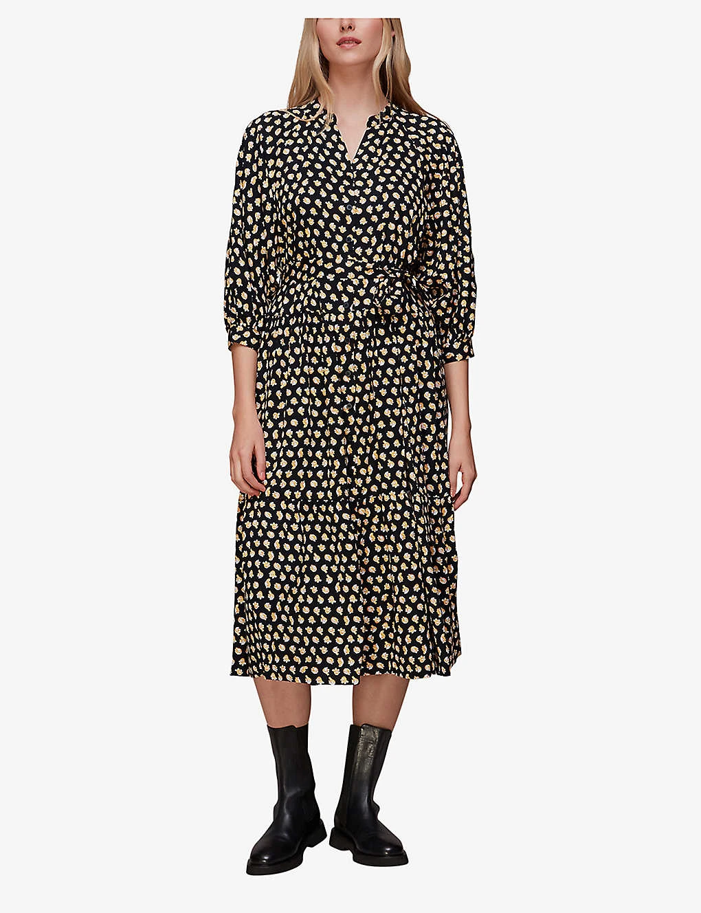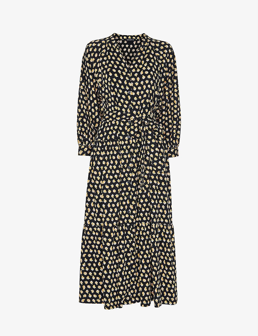 Whistles Twisting Tulips Floral-print Woven Midi Dress