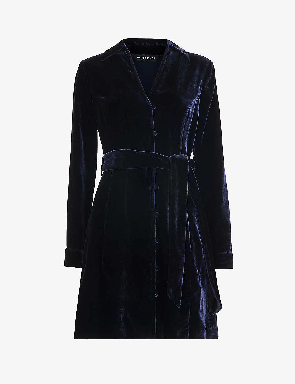 - Regular fit, collar, long sleeves, buttoned cuffs, belt loops, detachable self-tie fastening, velvet texture